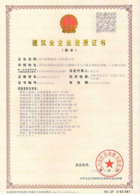 四川騰耀建筑工程有限公司  地址:四川省德陽市旌陽區(qū)南湖路66號九為藍谷德陽總部港1-A-22棟1層  電話:0838-2507855